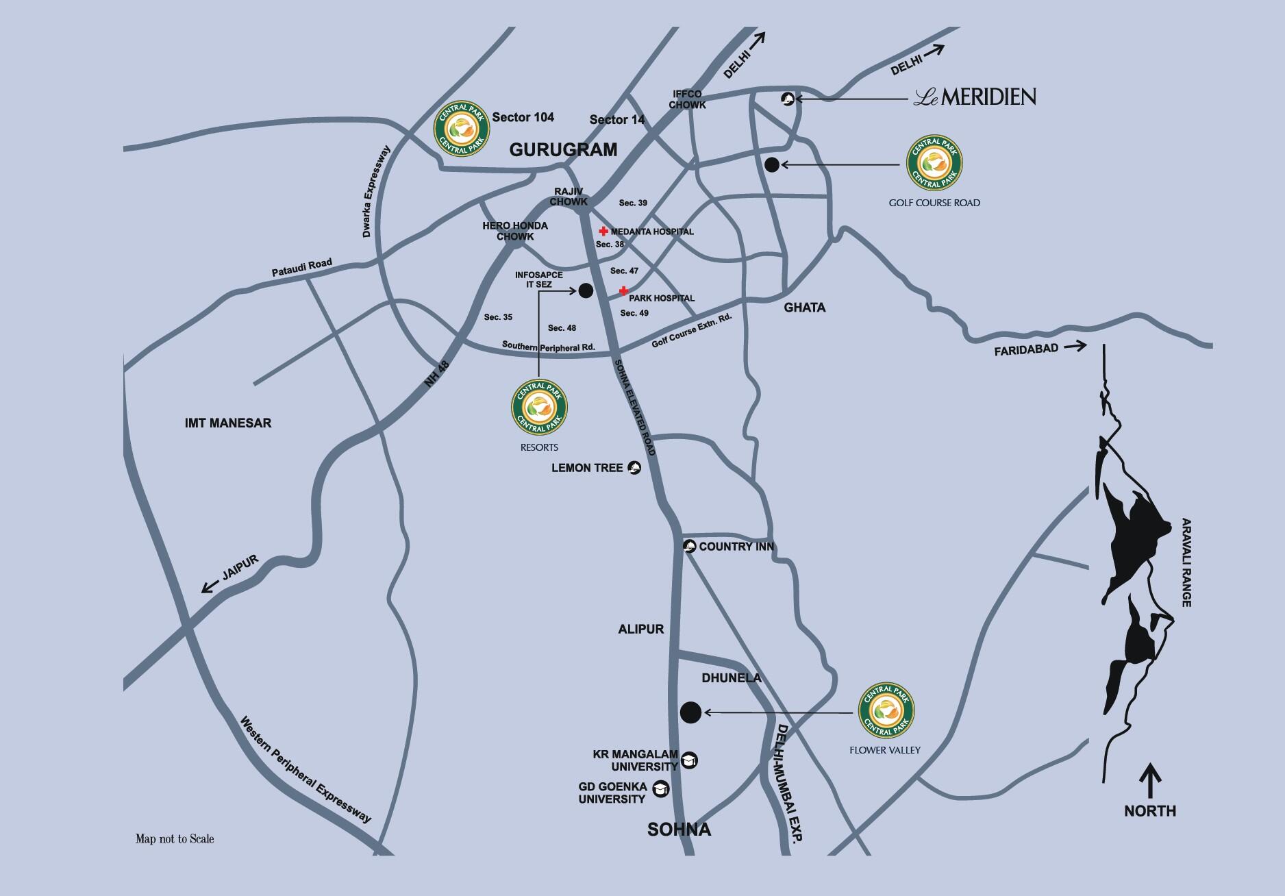 - Some popular transit points closest to Central Park Flower Valley Selene Tower Sector-33 Sohna, Gurgaon are Gurgaon Railway Station. Out of this, $nearestTransitLabel is the nearest from this location.