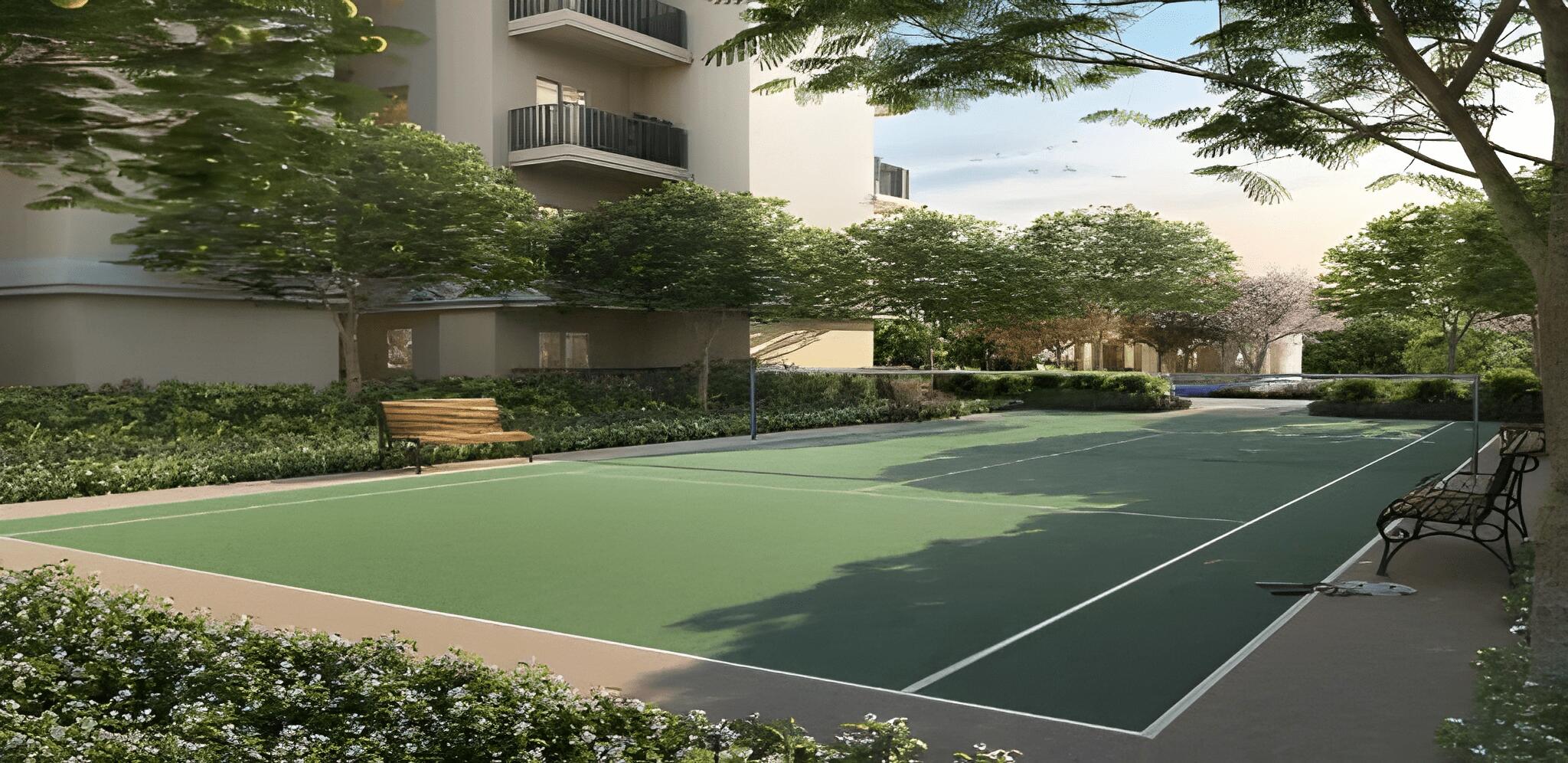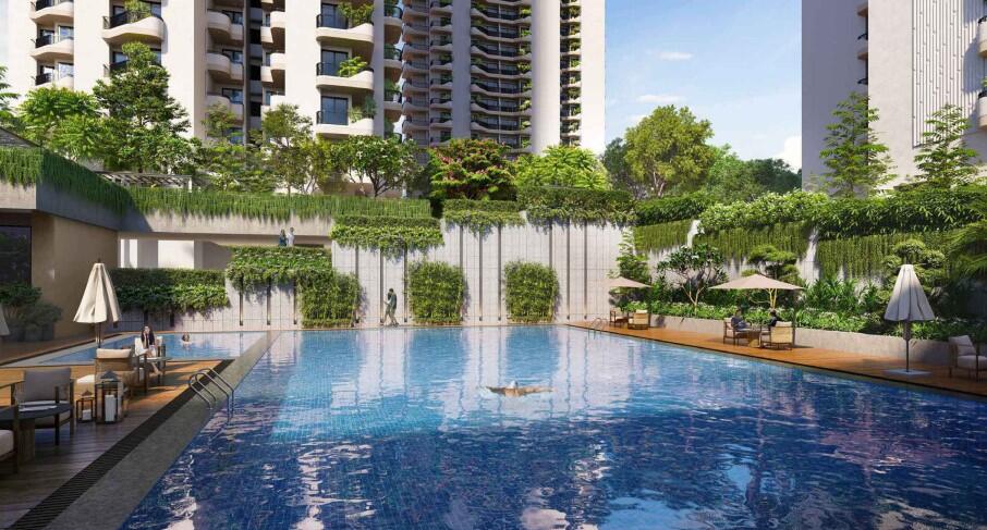 Finishes External Wall Finish: A combination of texture paint, cement paint, or external emulsion paint. Internal Wall & Ceiling Finish: Oil Bound Distemper (OBD) or Acrylic emulsion paint on walls and ceiling. Living Room Flooring: Vitrified Tiles. Bedroom/Study Flooring: Vitrified Tiles. Doors: The main/internal door is an 8-foot high solid particle board with a laminated/veneer finish. The frame is a hardwood/plywood structure with a laminated/veneer finish. External doors/windows: UPVC Frame with plain and toughened glass. Hardware: Good quality handles and fittings. Electrical: Good quality modular switches and sockets, and copper wiring. AC-VRV/VRF will be provided. Kitchen Walls: Two feet of ceramic tile dado above the counter, with the rest of the wall finished with acrylic paint or OBD. Floor: Vitrified Tiles. Counter: Granite/composite stone. Fittings and Fixtures: Good quality C.P. Fittings and a stainless steel single bowl sink with a drain board. The kitchen is provided without woodwork and appliances. Toilets Walls: Ceramic/vitrified tiles up to the false ceiling level. Flooring: Matt ceramic tiles/vitrified tiles. Ceiling: False ceiling. Fittings & Fixtures: Good quality C.P. Fittings, along with an English-type WC and a wash basin in a white shade. Verandah / Balcony Flooring: Ceramic Vitrified Tiles. Ceiling: OBD. Wall: Texture/External emulsion. Railing: M.S. Railing. Common Areas Corridors (Flooring): A combination of stone and vitrified tiles on the ground/basement floor, and vitrified tiles on typical floors. Corridors (Ceiling & Wall): Acrylic Emulsion Paint on the walls and OBD on the ceiling for the ground floor and basement. OBD for the typical floors. Main Staircase & Fire Staircase: Ceramic Tiles/Vitrified Tiles/Kota Stone. Railing: MS railing. Basement/Stilt Flooring: RCC Trimix Floor. Structure & Power Structure: RCC frame structure. Power Back up: Mandatory power backup is provided at an additional cost. 2BHK: 9 KVA. 3 BHK: 11 KVA. Penthouse: 12 KVA. The capacity is calculated at 50% diversity, meaning gensets with a capacity of 50% of the total load will be installed.