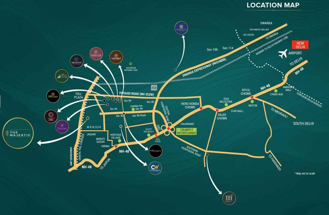 - Some popular transit points closest to JMS Group The Majestic Harsaru, Gurgaon are Manesar Metro Station and Manesar Railway Station. Out of this, $nearestTransitLabel is the nearest from this location.