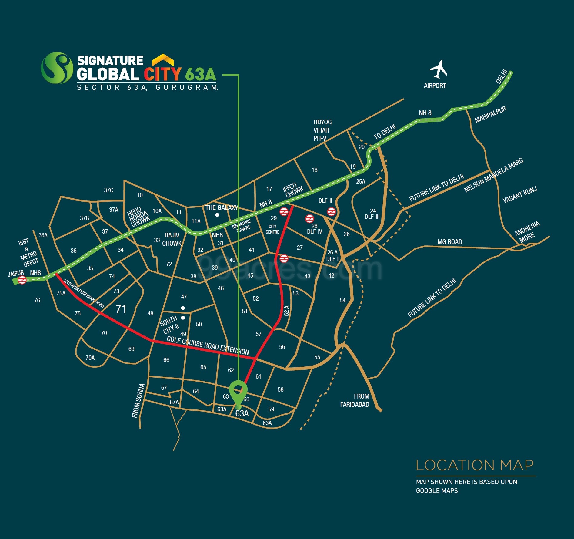 *Spread over an area of 5.01 acres, Signature Global City 63A Sector 63A, Gurgaon is one of the spacious housing societies in the Gurgaon region. With all the basic amenities available, Signature Global City 63A fits into your budget and your lifestyle.